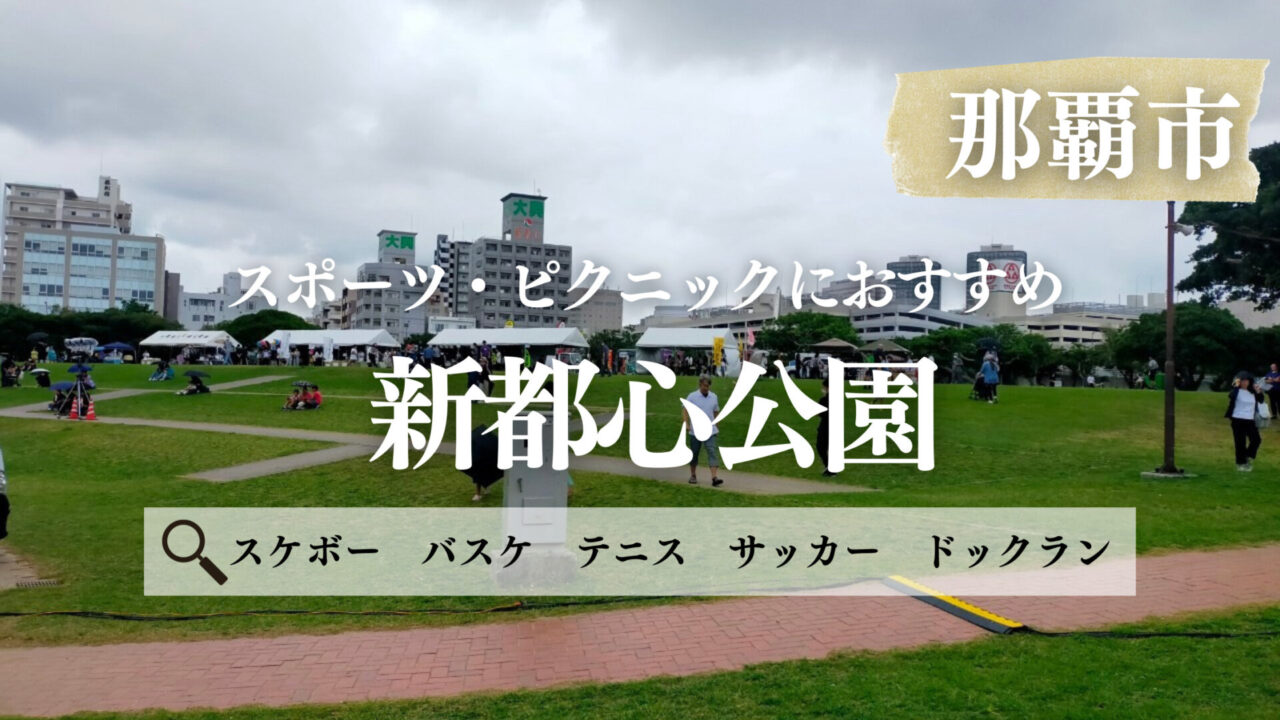 那覇の中心にある大きな公園。駐車場は有料ですが広いですし、テニスコートやバスケットボールコート、スケートボードコート、ジョギングコース、多目的広場まであります。